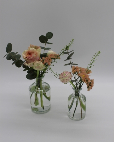 Antingen lämnar ni vaserna till mig innan bröllopet så arrangerar jag med blommorna.